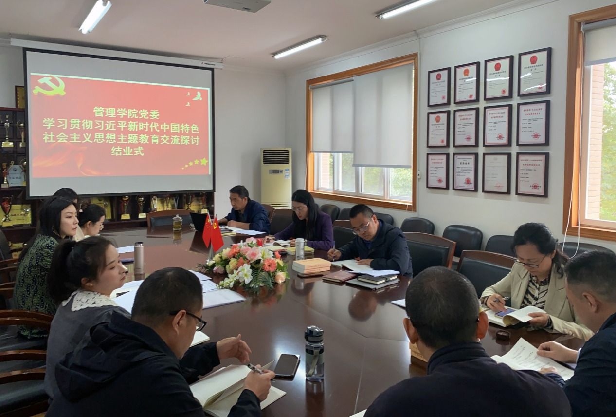 【本网讯】4月24日上午,管理学院在集贤楼316会议室举行学习贯彻习近平新时代中国特色社会主义思想主题教育读书班结业式,学院党委书记刘敦虎主持会议。