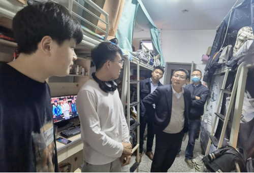 11月28日晚上,网络空间安全学院党委书记张仕斌、党委副书记陈智勇、学生科科长姜艳、学生科副科长贾茜、分团委书记夏焜、各级辅导员一行走访10栋、18栋等学生公寓,与同学们亲切交流。