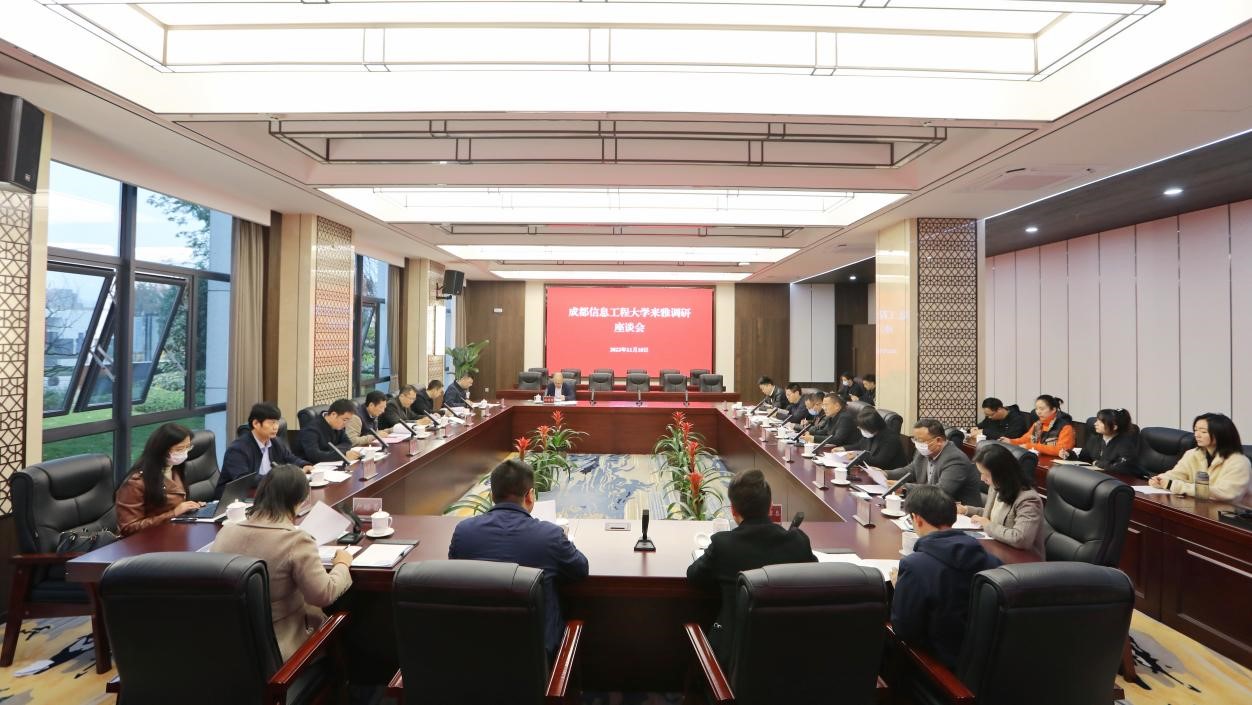 会上,科技处处长李乐中介绍了学校的科研和学科建设情况。雅安经开区管委会、雅安市委组织部、雅安市经济和信息化局、雅安市气象局、雅安市企业融资担保有限责任公司及我校党委组织部、党委统战部、大气科学学院、电子工程学院(大气探测学院)、软件工程学院、区块链产业学院和统计学院等部门的负责人和教师参加了座谈,双方就校地合作事宜进行了深入交流。