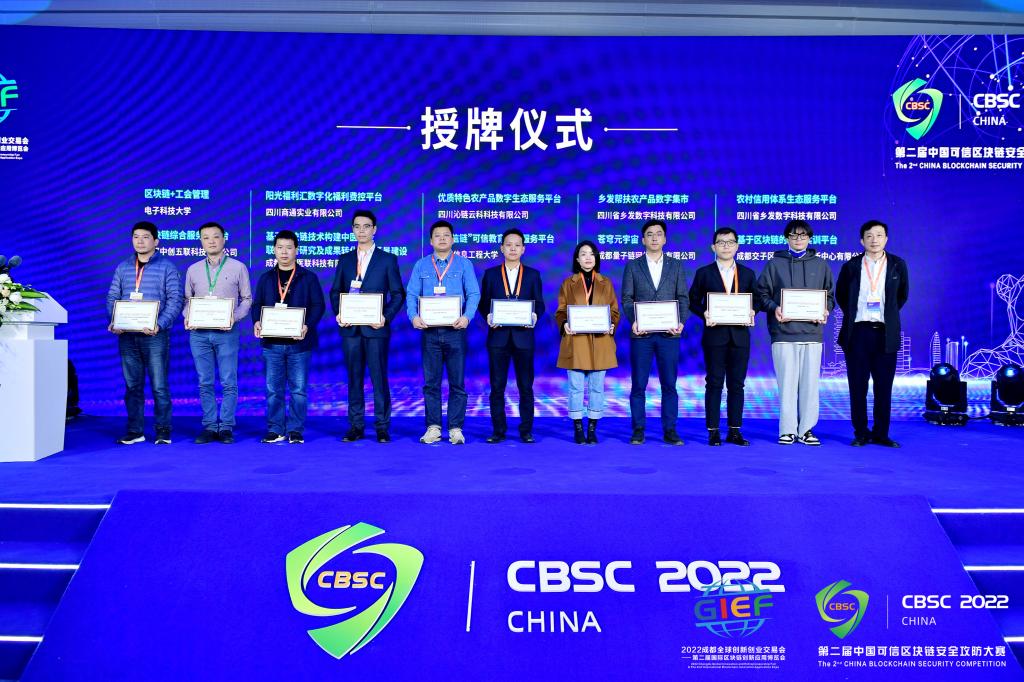 19日上午的决赛开幕式上,举行了成都国家区块链创新应用试点项目授牌仪式,共计37个项目入选。我校的‘成信链’可信教育信息服务平台”成功入围并由主办方正式授牌。