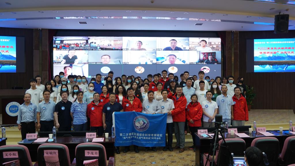 【本网讯】6月8日,第二次青藏高原综合科学考察研究“2022高原低涡组网综合立体观测试验”出征仪式线上线下同步举行。线下会场设在我校航空港校区国际会议厅。中国科学院青藏高原研究所、中国气象局高原气象研究所、中国科学院西北生态环境资源研究院、中国气象局国家气候中心、中国科学院空天信息创新研究院、西藏自治区气象局、南京大学、浙江大学、中山大学、长安大学、华北电力大学、兰州大学、复旦大学、南京信息工程大学、中国科技大学、悟空官方网站等单位共25位专家参会。学校副校长舒红平、研究生处处长陈权亮、科技处处长李乐中、大气科学学院院长张宇参加仪式。张宇主持会议。