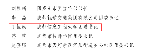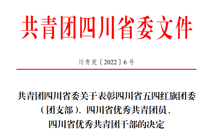 【本网讯】近日,共青团四川省委发布了《关于表彰四川省五四红旗团委(团支部)、四川省优秀共青团员、四川省优秀共青团干部的决定》,学校团委书记丁恒康同志获2021年度“四川省优秀共青团干部”荣誉称号。