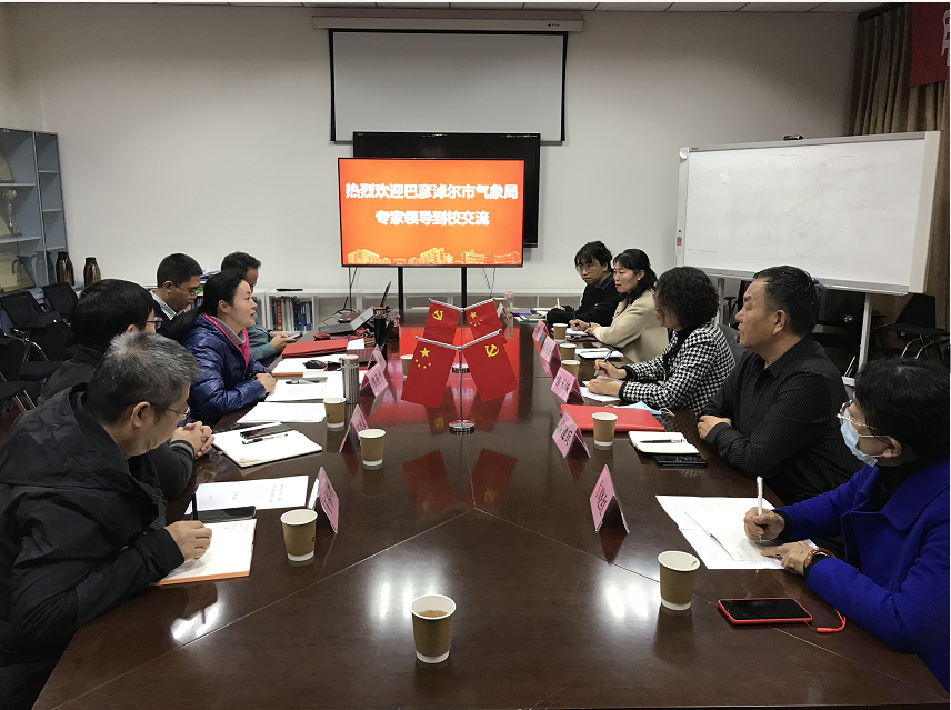【本网讯】11月29日上午,内蒙古巴彦淖尔市气象局郭玉凤局长一行6人到我校电子工程学院(大气探测学院)进行交流。交流会在气象楼216会议室召开,会议由电子工程学院(大气探测学院)党委书记缪燕平主持,学院相关领导、科研团队负责人、教工党支部书记等参加了交流会。