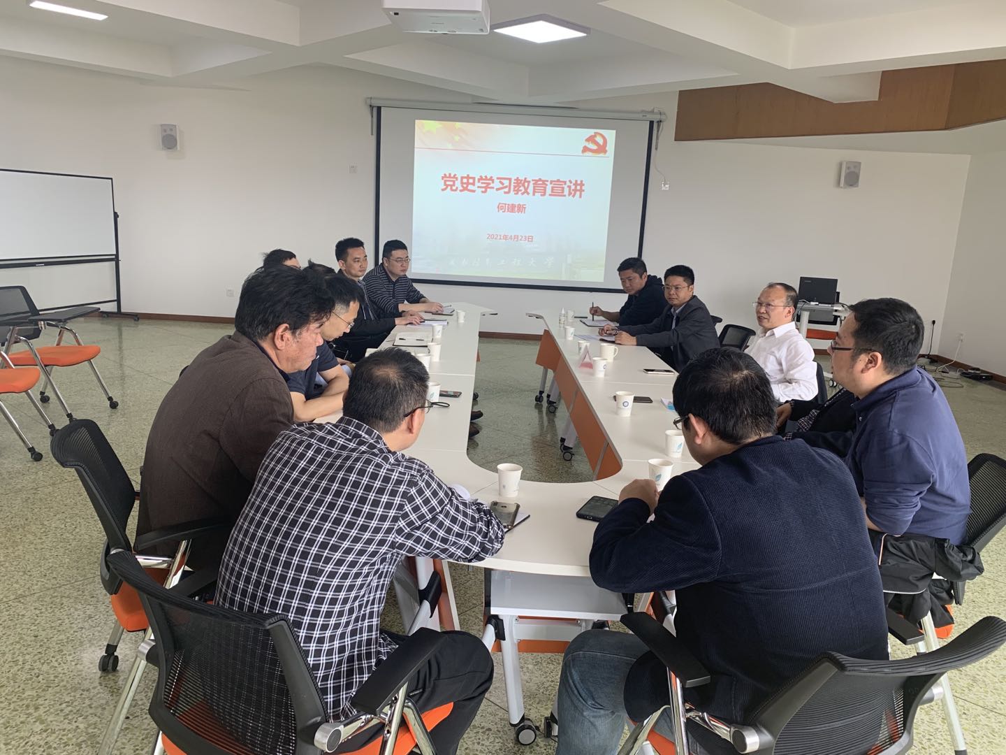 何建新对党史学习教育提出了工作要求,一是要加强组织领导,二是要树立正确党史观,三是要切实为群众办实事,四是要注重方式方法创新。他谈到,当前国内国际形势严峻,高等教育也遇到了前所未有的挑战,怎样做好人才培养工作,为党育人、为国育才,需要每位教育工作者的努力。我们要发扬“红军不怕远征难”的精神,直面挑战、迎难而上,创新教育教学方法,培养优秀的社会主义接班人。