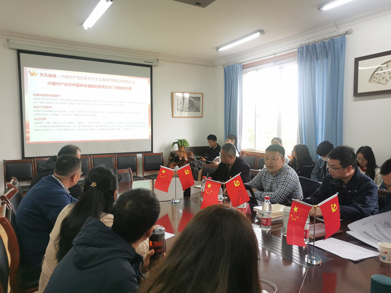 舒红平首先简要回顾了1921年建党至今的百年党史,提纲挈领地梳理了中国共产党的发展脉络。他指出:“争取民族独立、人民解放和实现国家富强、人民幸福,是中国共产党百年历史的主题和主线;‘不懈奋斗史’‘理论探索史’‘自身建设史’,是中国共产党百年历史的主流和本质;革命、建设、改革、复兴事业不断推向前进,是中国共产党百年历史的鲜明特征;逐步实现救国、兴国、富国、强国的奋斗目标,是中国共产党百年历史的庄严使命。”随后,他同与会同志分享了在工作生活中对我党“为中华民族谋复兴,为中国人民谋幸福”的个人感悟。