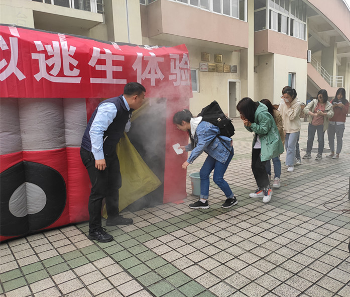 林细俤强调,疏散演练就是一次应对灾难的很好实践和体验,希望全院师生能牢固树立安全在于遵守制度,安全在于平时预防,安全在于自我保护,安全在于学习知识,安全更在于临危不惧的意识。吴教官为同学们宣传并讲解消防安全知识,并重点讲解“拉水带比赛”和“帐篷模拟逃生”活动流程及其注意事项。演练过程中最精彩部分为“帐篷模拟逃生”,消防帐篷内采取火灾烟雾模拟,真实还原火灾现场,演练师生需按逃生姿势,捂住口鼻,俯身前行,并在人体承受极限的45秒内完成逃生。参与演练的同学按照分组依次进入消防帐篷,采取计时逃生的方式,按照逃生姿势,均顺利完成逃生,这都考验着体验人员的火场逃生能力。同学们积极参与,切实增强了消防安全防范意识和火灾逃生自救能力。