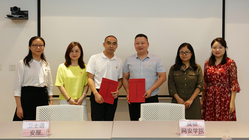 参观结束后,全体同学在卫士通会议室参加了悟空官方网站网络空间安全学院研究生党支部与卫士通安服事业部党支部结对共建签约仪式和交流座谈。签约仪式前,卫士通总经理助理陈澜女士代表公司致欢迎辞并介绍卫士通企业的概况,她表示,企业发展的一个重要途径就是校企联合,期望在党建、技术、育人、招聘等方面与成信大网络空间安全学院进行深入合作,实现校企双赢。随后,林细俤和李雅静也分别做了发言。林细俤与卫士通安服事业部党支部书记叶定松分别代表校企双方签订了党支部结对共建协议书并合影留念。