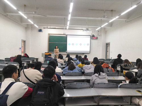 【本网讯】11月5日下午,上海一者信息科技有限公司(Tmxmall)产品经理周冰靓和宗冰清应外国语学院邀请在航空港校区1104教室做了题为“翻译技术云平台的发展趋势及语料的应用”翻译技术科普讲座。此次讲座由学院翻译专业教研室主任谭杰教授主持,学院院长黄驰、副院长卢婕、部分翻译专业教师及本科生参加了本次讲座。