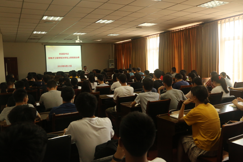 【本网讯】6月13日上午,学校党委副书记、纪委书记雷超在气象楼215会议室为电子工程学院学生上思想政治课。电子工程学院党委书记缪燕平、党委副书记杨勇、全体辅导员老师、全体学生党员、入党积极分子、主要学生干部参加了学习。