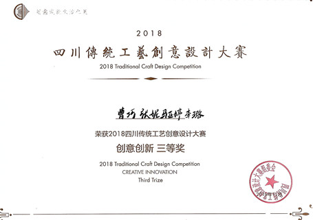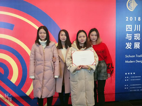 【本网讯】近日,“四川传统工艺创意设计大赛”和“四川传统工艺与现代设计发展论坛学术研讨”在四川省图书馆第一学术报告厅落下帷幕。文化艺术学院田晓膺老师指导的视觉传达设计专业2016级学生马亚婷、李璐、张妮、曹巧的作品《彝韵》荣获创意创新三等奖的佳绩。
