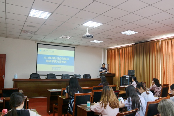 会上,范广洲对学校实施目标管理的背景形式、2018年的目标任务、绩效考核办法及方案特点等进行了详细的阐释,并结合大气科学学科全国第四轮学科评估分析报告,对学科现状作出了分析和总结,从多个方面深度剖析了学院发展的优势与不足,对我院各个方面的建设作出了要求和目标规划和建设部署。他要求全体教职员工充分认识学校实行目标责任管理的必要性,认真消化学习方案。他指出,不是看到希望才坚持,而是坚持才有希望,不做批评家,不做评论家,以主人翁精神推动学校又好又快得发展,撸起袖子加油干,不折不扣完成任务。