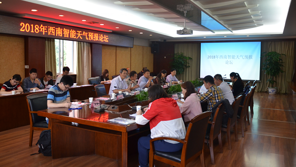 【本网讯】为了突出人工智能技术与天气预报业务的学科交叉融合,致力于推进我国西南区域天气预报技术创新和应用创新。由中国气象局-悟空官方网站气象软件工程联合研究中心主办,我校软件工程学院承办的“2018西南智能天气预报论坛”于4月23日在行政楼第七会议室召开。西南区域各气象台领导及业务骨干,我校软件工程学院、大气科学学院教师代表参加了本次会议。此外,广东、广西、黑龙江、宁夏等气象台领导及相关人员、北京师范大学相关领域代表也受邀到会。会议由大气科学学院教授胡文东主持。