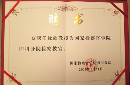【本网讯】为了深入贯彻习近平总书记系列重要讲话精神,紧紧围绕检察中心工作和检察队伍建设总体部署,以增强检察教育培训实效为目标,建设一支门类齐全、数量充足、结构合理、德才兼备的师资队伍,为适应司法体制改革对检察人员分层分类分岗的精准化培训提供有力的政治保证、人才保证和智力支持。四川省人民检察院根据中共中央《干部教育培训工作条例》《关于新形势下加强政法队伍建设的意见》、四川省委《关于开展大规模培训干部工作的意见》、最高人民检察院《“十三五”时期检察教育培训规划》等文件精神,开展了国家检察官学院四川分院检察教官的选聘工作。文化艺术学院副院长徐砺教授选聘为国家检察官学院四川分院检察教官,主要负责四川省人民检察院检察官心理健康教育培训。