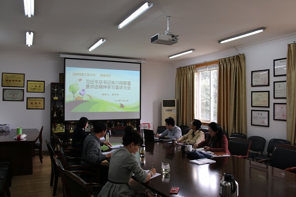 【本网讯】3月16日下午,管理学院中心组在龙泉校区第二行政楼三会议室召开习近平总书记来川视察重要讲话精神专题学习会。学院全体科级以上干部及各支部书记参加了学习,党总支书记王子华主持学习宣讲。