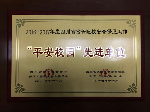 会上,省高教保卫学会、省高校消防协会对2016—2017年度“平安校园”建设工作进行了总结,对先进单位和个人进行了表彰。我校荣获四川省高校“平安校园”建设先进单位称号,我校2名保卫干部、4名安保队员以及4名学生也分别获得 “平安校园”建设先进个人称号。