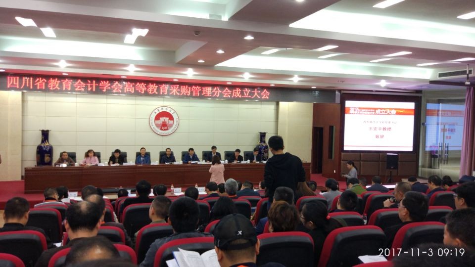 【本网讯】11月3至4日,由四川省教育会计学会主办、西华师范大学承办的四川省教育会计学会高等教育采购管理分会(以下简称采购分会)成立大会在西华师范大学华凤校区举行。西华师范大学党委书记王安平,中山大学政府采购与招投标管理中心主任贾延江,四川省教育厅财务管理处处长王羽,北京师范大学财经处处长陆兆老参加会议并作了重要发言。省内共51所高校政府采购主管人员参加会议,我校资产管理处相关人员也参加了本次大会。