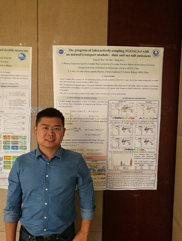 我校大气科学学院吴小飞博士应邀参加此次研讨会,并做题为《The progress of interactively coupling FGOALS-f with an aerosol transport model》的墙报交流。