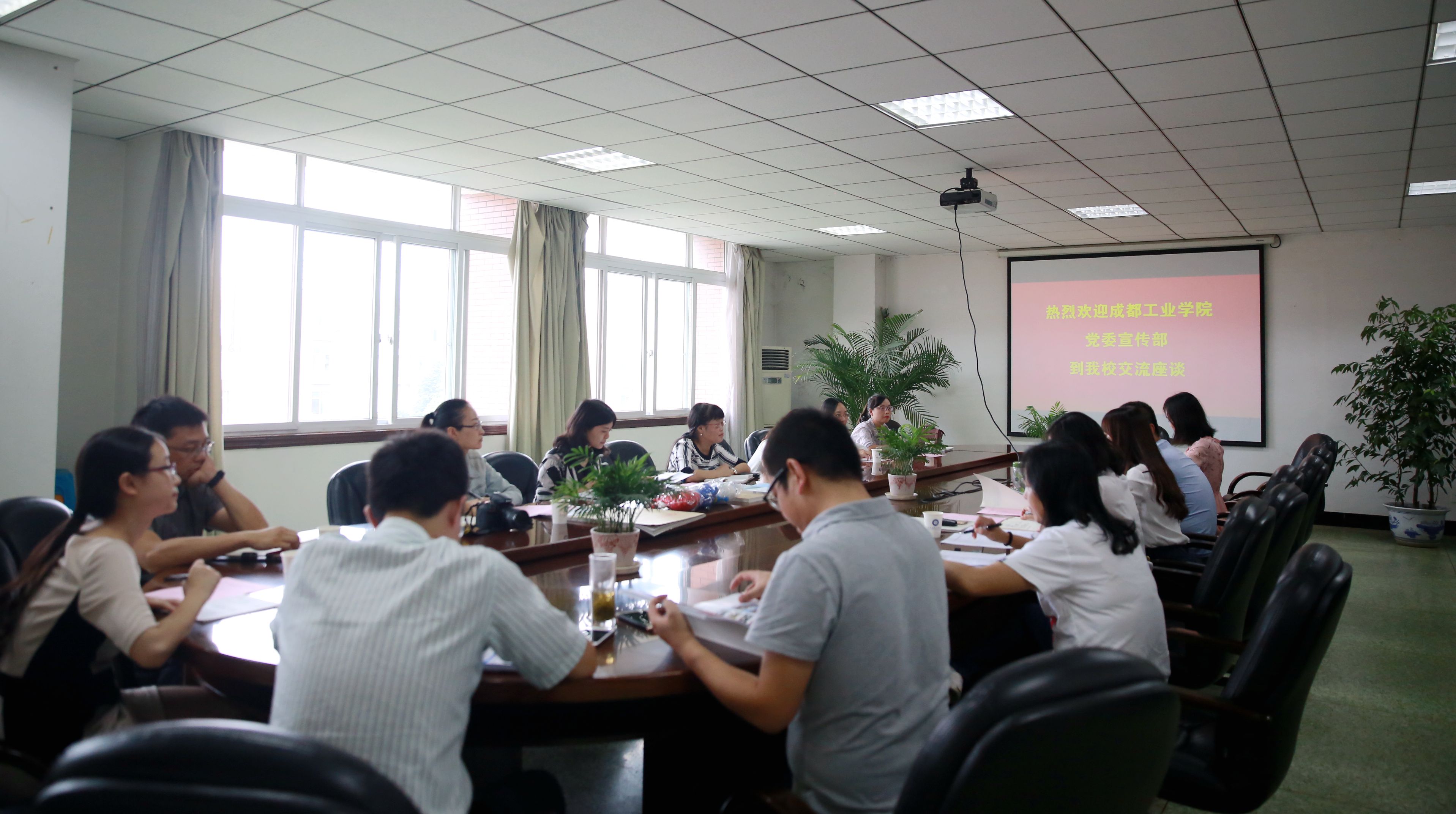 【本网讯】9月26日,成都工业学院党委宣传部部长冯瑛、副部长鲜国颖一行8人到我校党委宣传部考察交流学校宣传思想工作。学校党委宣传部部长饶华,副部长丁恒康、徐紫电及相关工作人员参加了交流座谈会。