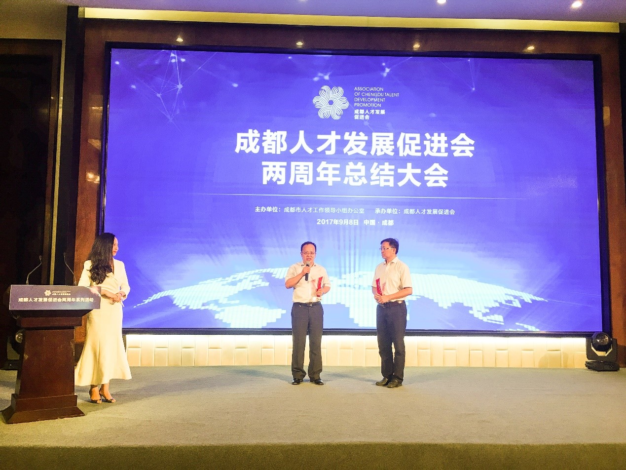 【本网讯】9月8日,成都人才发展促进会举办了两周年总结大会。促进会是成都市委组织部主管的社团组织,现有430多名人才专家。我校通信工程学院杜江博士应邀参加了会议。会上,经过推荐,主管部门同意,新选举产生了40名理事成员,杜江当选理事会成员;大会表彰了3位包括杜江博士在内的2017年度优秀会员,成都市委组织部彭副部长为优秀会员颁奖。