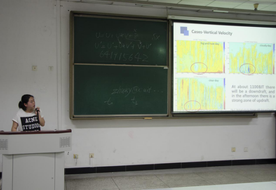 谢慧琳作了题为《激光雷达对非降水天气边界层的探测分析》的报告。她对边界层以及激光雷达在天气学中的应用作了简单的说明,并列举了径向速度、水平风向等雷达产品对几个非降水天气边界层个例进行了分析。