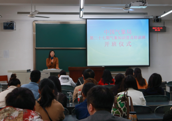 【本网讯】3月21日上午,中国气象局第27期气象知识普及培训班(文科)在学校航空港校区4309教室举行开班仪式。大气科学学院党总支书记张小红、培训班班主任赵磊和全体学员参加了开班仪式,开班仪式由赵磊主持。
