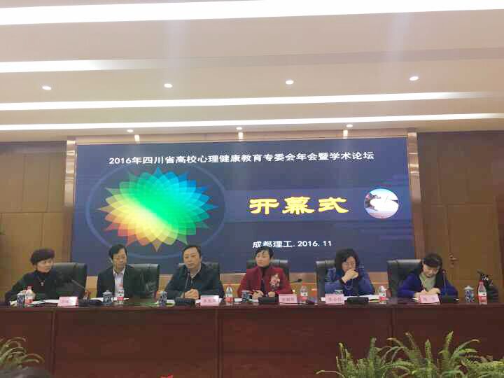 【本网讯】11月18日上午,四川省2016年高校心理健康教育专委会年会暨学术论坛在成都理工大学召开。来自全省54所高校共100余心理健康教育工作者参加了会议。我校学生工作处副处长闵卫东,心理健康教育中心主任蔡良华、李嘉雯老师,大气科学学院、管理学院负责心理健康教育工作的辅导员教师代表参加了会议。
