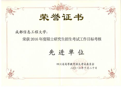 【本网讯】近日,四川省高等教育招生考试委员会发出通报,对2016年度硕士研究生招生考试工作目标考核先进单位进行通报,我校荣获“2016年度硕士研究生招生考试工作目标考核先进单位”表彰,既2015年来,我校连续两年获此称号。