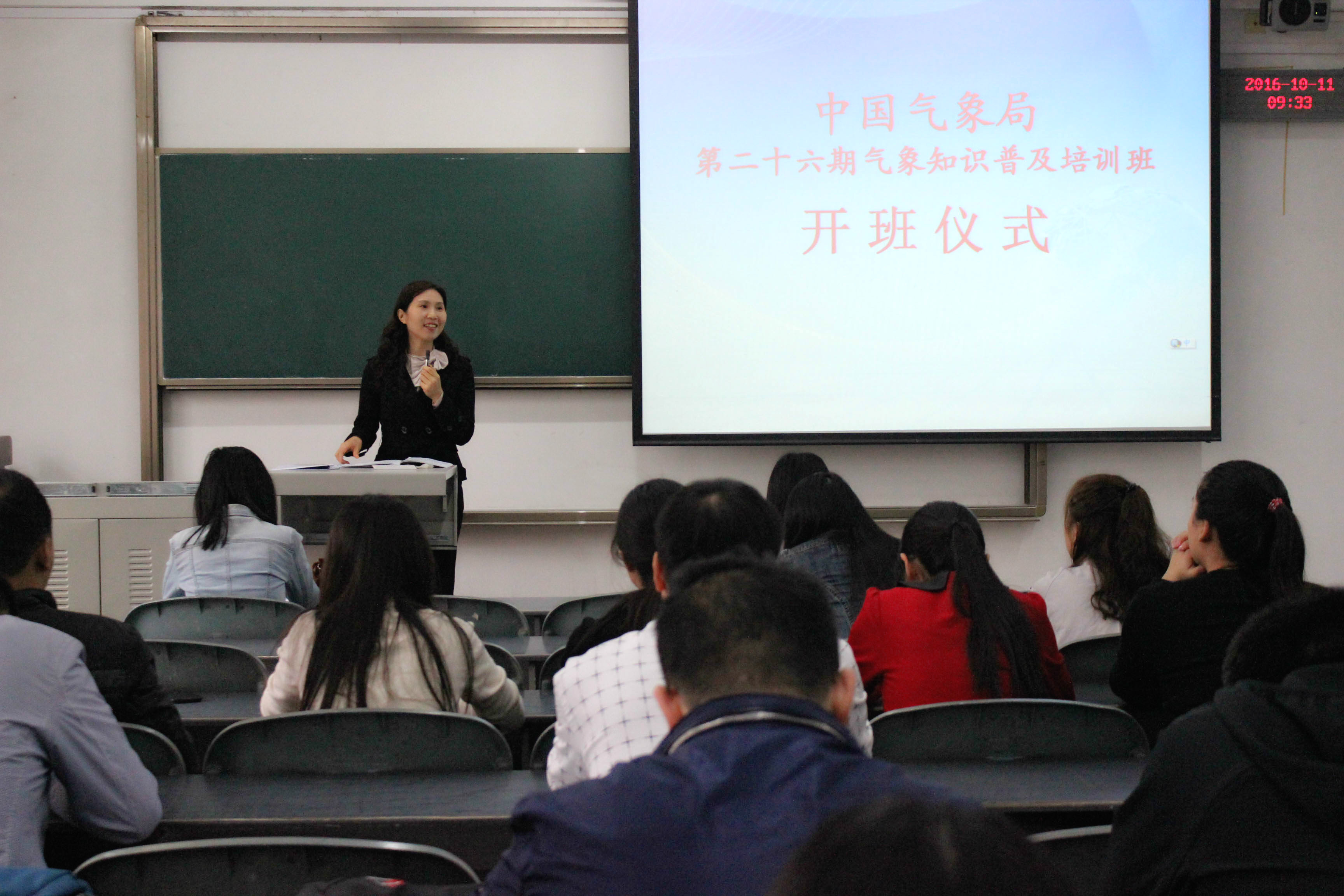 【本网讯】10月11日上午,中国气象局第26期气象知识普及培训班(文科)在学校航空港校区4309教室举行开班仪式。大气科学学院党总支书记张小红,院长助理华维,培训班班主任吴知之、赵磊、刘艳霞和全体学员参加了开班仪式,开班仪式由吴知之主持。