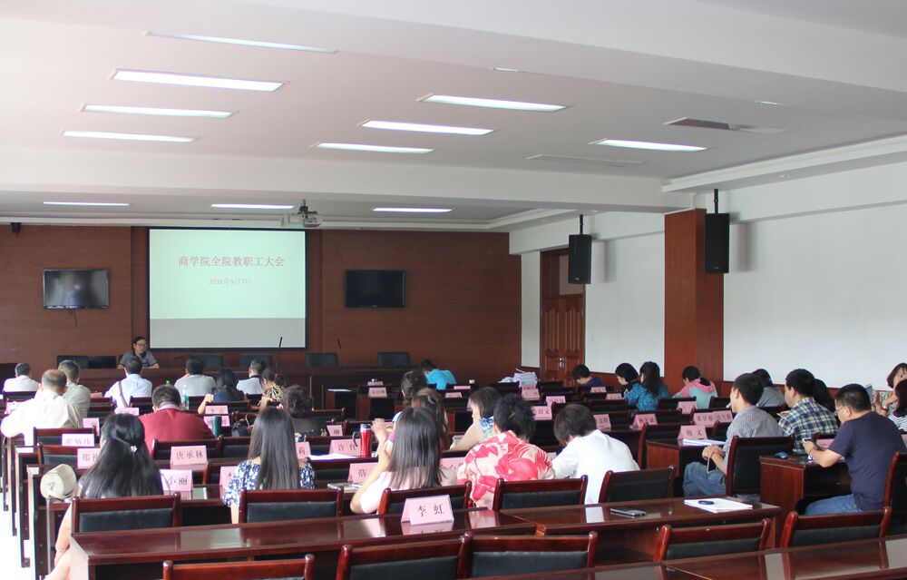 【本网讯】 9月7日下午,商学院召开本学期第一次全院教师大会。会议通报审核评估相关的推进情况,传达学校会议精神,安排部署本学期主要工作,大会由学院党总支书记李心伟主持。