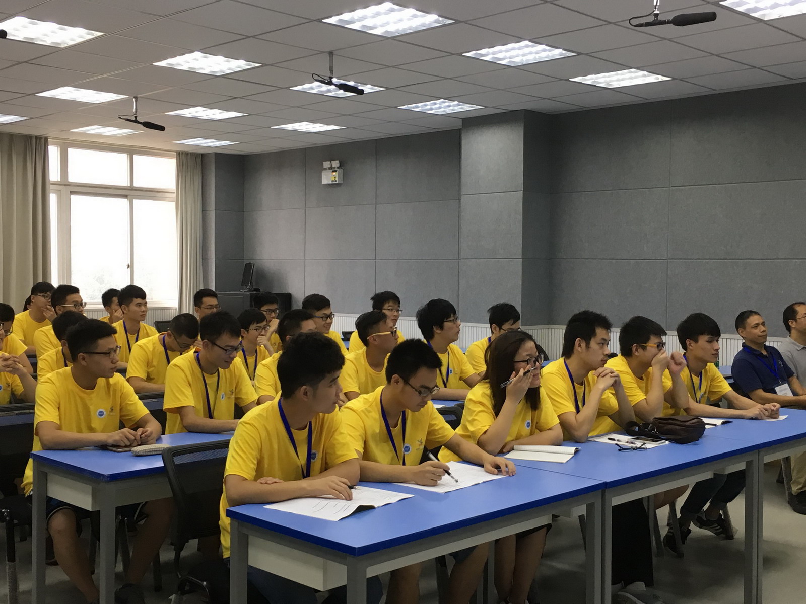 【本网讯】7月18日上午,悟空官方网站控制工程学院暑期国际教育周在1402教室开始授课。控制工程学院副院长蒋涛教授,测控教研室蒋世奇教授,自动化教研室付克昌副教授,出席了此次活动。学院14级36名学生身着统一的服装,精神饱满地期待李耀老师授课。