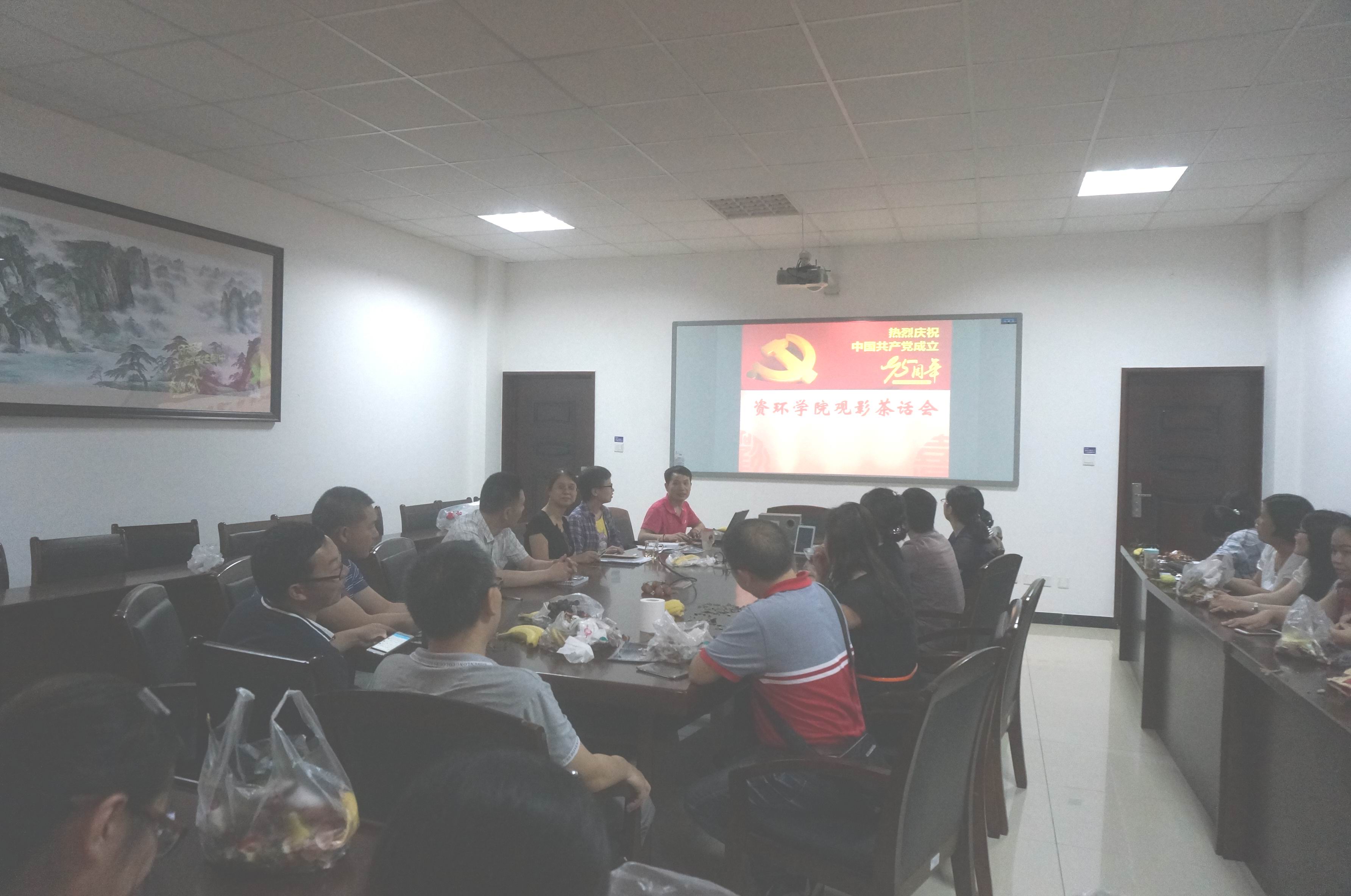 【本网讯】6月30日下午,资源环境学院教工党支部在资环楼221会议室举办庆祝中国共产党成立95周年观影茶话会活动。资源环境学院全体教工党员参加了此次会议。