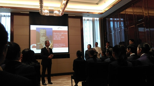 酒店为同学们举行了隆重的欢迎仪式。酒店总经理、人力资源部总监、副总监、餐饮部总监、房务部总监参加了欢迎仪式。 简短的欢迎仪式结束后,总经理Clark进行了主题为“丽思卡尔顿成功秘诀”的演讲,让同学们对酒店发展行业有了更深一层次的认识。经理结合个人从业经验和体会,对同学们提出几点希望,希望同学们严格要求自己,以此为奋斗目标,努力向前。