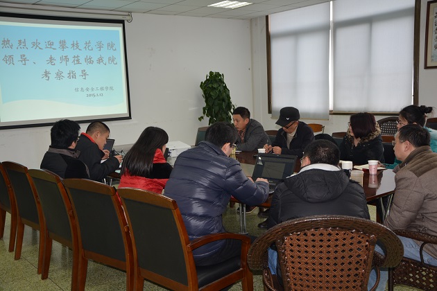 【本网讯】1月12日上午,攀枝花学院数学与计算机学院计算机专业教研室主任岐世峰、网络工程教研室主任蒋斌一行4人来我院进行了调研考察。学院副院长张仕斌、办公室副主任罗怡、信息安全教研室主任吴春旺及部分教师会见了来访客人,并进行了交流。