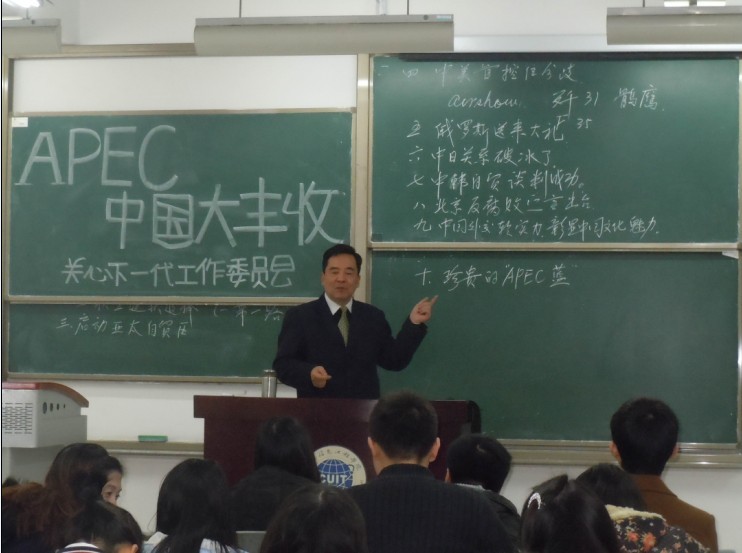 【本网讯】11月下旬,由学院关心下一代工作委员会主办、离退休工作处和院团委承办的“APEC会议”讲座分别在航空港、龙泉校区举行。