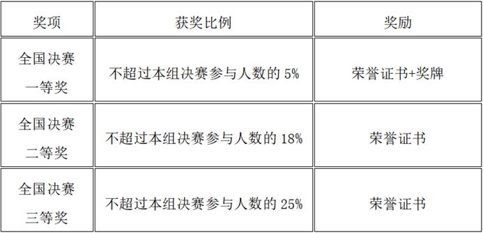 2.全国决赛一等奖每组前三名奖金600元(税前)。