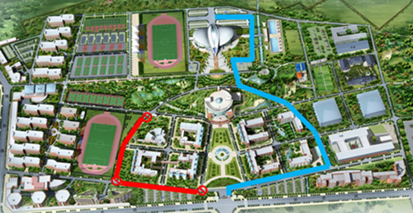 (二)校园车辆按“蓝色线”指示路线双向通行。