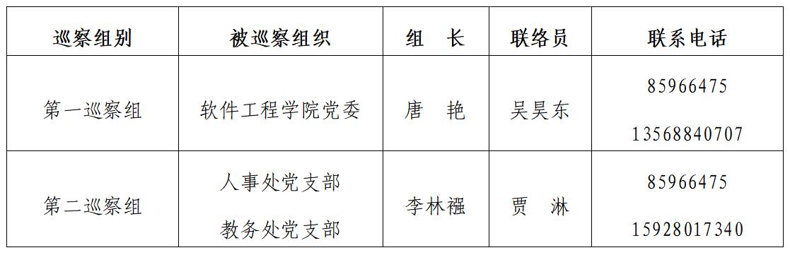 根据《中共悟空官方网站委员会内部巡察工作实施意见》的规定,按照学校党委巡察工作领导小组的统一部署,学校党委巡察组定于2020年6月10日至6月24日,对软件工程学院党委、人事处党支部、教务处党支部开展校内巡察工作。现将有关事宜公告如下: