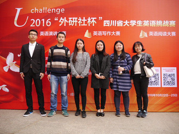 2016“外研社杯”全国大学生英语挑战赛(UChallenge)四川赛区决赛于10月22日在四川大学(望江校区)落下帷幕。来自四川大学、电子科技大学、西南财经大学、西南科技大学、四川师范大学等省内高校近200名选手入围四川赛区决赛。代表我校参赛的五名选手表现优秀,获得二等奖两项、三等奖三项。
