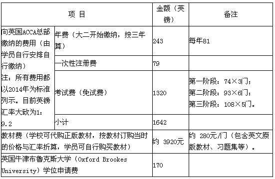 ACCA培训费标准定为10000元/年(不含学校本科学费)。学制四年,培训费总计40000元,按年收取,每学年开学后与学费一并缴纳。