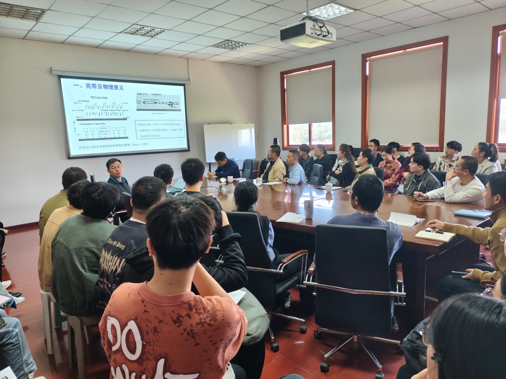 傅云飞教授的报告研究了青藏高原与中国中东部地区亮带参数特征及有无亮带降水特征,揭示了两地亮带高度和厚度的差异,并厘清了两地有无亮带时降水率的变化特点、粒子谱差异、温湿结构差异,最后分析了有无亮带对被动微波信号的影响程度。马伟强研究员的报告充分利用中国科学院青藏高原研究所牵头在青藏高原及周边地区建立的“水-冰-气-生”多圈层地气相互作用综合观测研究平台及新增观测点开展土壤成分等观测试验,同时收集已有的综合观测资料,并结合中国气象局模式等进行多学科交叉的综合分析研究,以揭示青藏高原土壤热通量时间空间变化以及计算结果的改进对天气模式中局地降水模拟效果的改善。会后,我校师生和两位老师开展了深入的讨论交流。