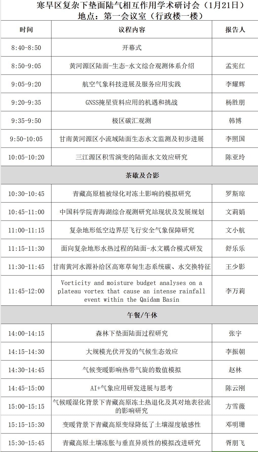 【本网讯】气候变化背景下,寒旱区复杂下垫面陆面过程演化事关国家生态与水资源安全、重大建设工程实施和“双碳”目标实现,具有重要科学意义和社会意义。为进一步加强该领域研究,大气科学学院会同中国科学院西北生态环境资源研究院、南京信息工程大学、中山大学、北京弘象科技等研究院所、高校与企业,联合召开“寒旱区复杂下垫面陆气相互作用学术研讨会”,欢迎广大师生莅临交流。