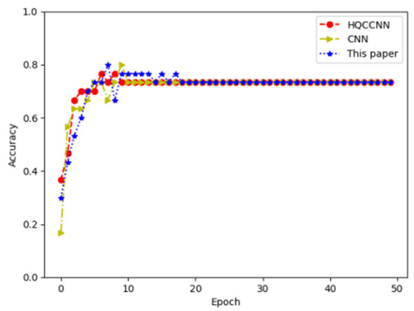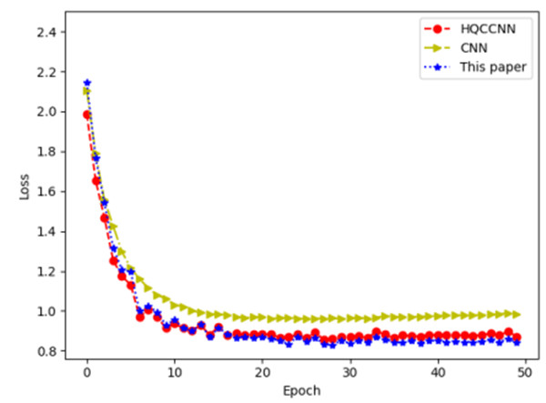 图2 HQCCNN、CNN和本文成果的准确度和损失函数比较