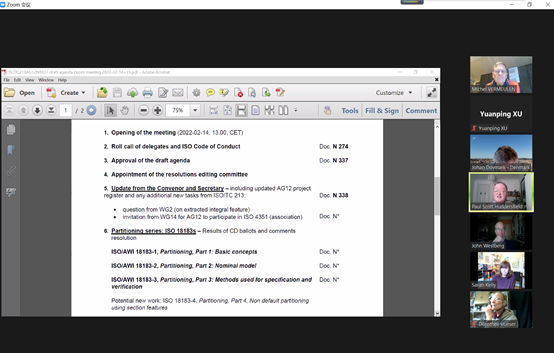 CCAT于2021年成功参与开发了2项国家标准:产品几何技术规范(GPS)楔体第1部分:角度与斜度系列(http://std.samr.gov.cn/gb/search/gbDetailed?id= B4C32814ED898084E05397BE0A0A02E1)和产品几何技术规范(GPS)楔体第2部分:尺寸与公差标注(http://std.samr.gov.cn/gb/search/gbDetailed?id= AC9483E2A77E8EDEE05397BE0A0A9C21),为国家标准化建设做出了积极的贡献。CCAT的许源平教授、李涂鲲教授由国标委推荐于2022年2月成为国际标准化组织ISO TC/213技术委员会国际委员,并代表我国参加了2月14日-15日召开的ISO TC/213 AG12工作组的在线工作会议,审定了3项ISO国际标准,并讨论了如何开展标准文档智能化底层框架重构方面的标准建设工作,有望实现我国在几何公差领域国际标准开发与制定的突破。