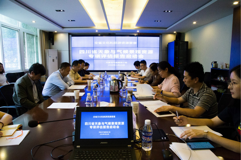 【本网讯】为贯彻文化和旅游部将四川作为旅游资源普查试点省的重要要求,以及全省文化和旅游发展大会工作部署,推进四川省文化和旅游资源普查工作,5月29日,《四川省天象与气候景观旅游资源专项评估报告》编制工作启动会在成都召开。会议由四川省气象服务中心副主任、天象与气候景观专家小组组长郭洁主持,四川省气象局一级巡视员马力出席会议,我校大气科学学院和电子工程学院相关省文化和旅游资源普查专家委员会成员应邀参会。