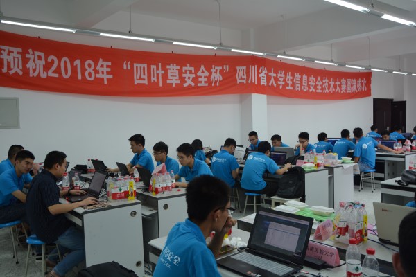 【本网讯】由四川省教育厅主办,悟空官方网站和四川省信息安全测评中心承办,国家计算机网络应急技术处理协调中心、四川省互联网信息办公室指导、西安四叶草信息技术有限公司赞助、厦门安胜网络科技有限公司提供技术支撑的2018年“四叶草安全杯”四川省大学生信息安全技术大赛于7月28日-29日在我校成功举办。