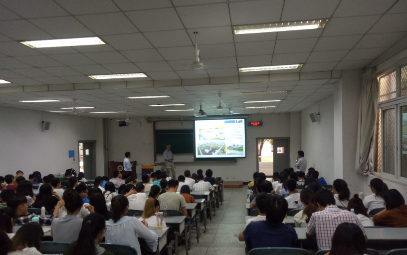 【本网讯】9月22日下午,德国LAR拉尔总公司研发部主任、环保专家Wolfgang Genthe博士/教授在我校航空港校区第一教学楼1106教室作了题为《德国柏林土壤及地下水的修复研究》的学术报告。报告会由资源环境学院副院长徐成华主持,资环学院全体师生聆听了讲座。