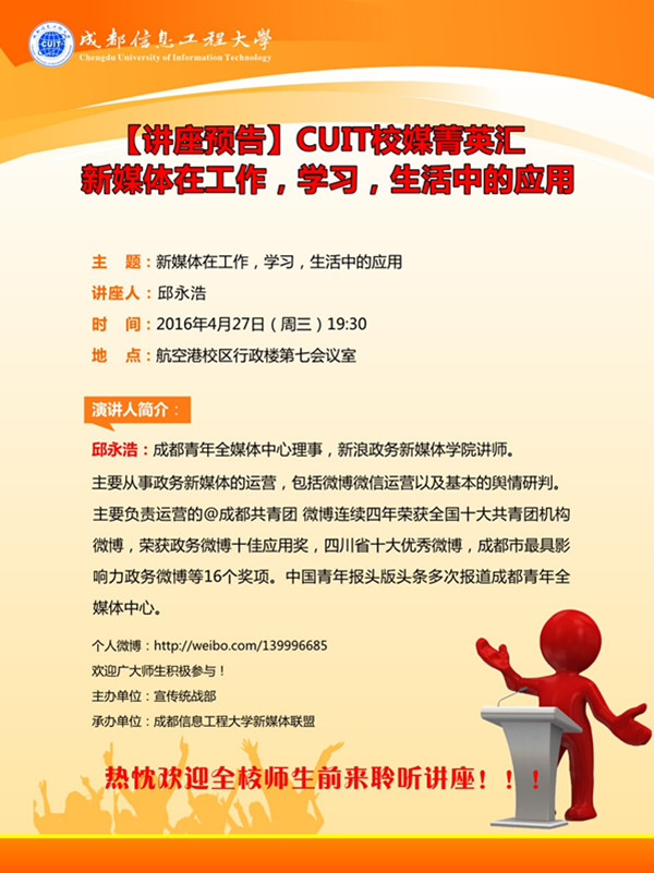 来源:宣传统战部 作者:潘君瑶日期:2016-04-27 审核:新闻中心 点击: