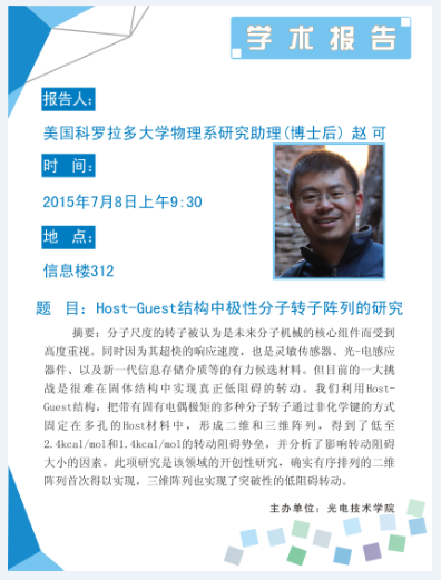上一条:美国科罗拉多大学物理系研究助理应邀来我校作学术报告