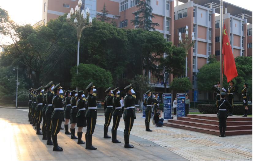 上午7点20分,国旗护卫队队员迈着铿锵有力的步伐护卫国旗走向国旗台。在雄壮的国歌声中,鲜艳的五星红旗冉冉升起,全体师生高唱《义勇军进行曲》,满怀崇敬之情向国旗行注目礼。