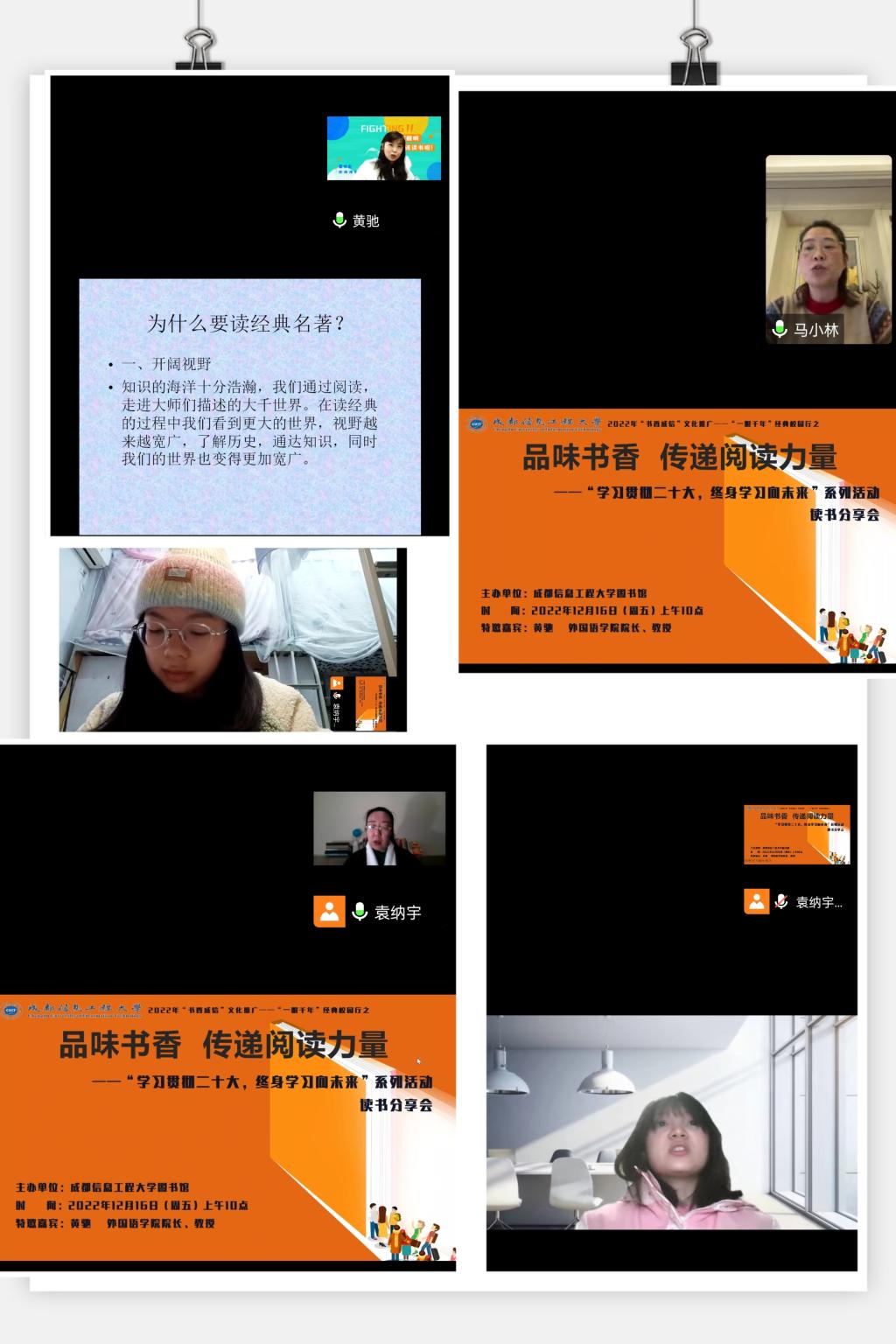 12月16日上午,以“品味书香 传递阅读力量”为主题的阅读分享会在线上举行。活动特邀主讲嘉宾、外国语学院院长黄驰教授分享了外国经典名著、莎士比亚所著的《威尼斯商人》的阅读感受,重点剖析了作品呈现的人物、故事背后的历史时期以及宗教、政治、经济状况,分享了在阅读中要多维度看问题的观点;她鼓励同学们通过阅读,走进大师描述的大千世界,在经典阅读过程中,看到更大的世界,了解历史,通达知识,增长智慧。